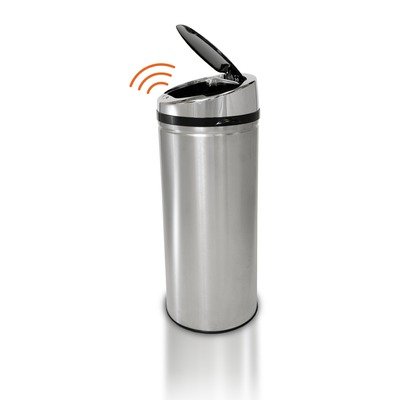 This 8 Gallon Touchless Trashcan NX model uses latest sensor technology. As your hand or debris enter the zone 6 inches from the infrared sensor on top of the trash can, the lid will automatically open. The lid will remain open if debris or hand is within the 6 inch range of the infrared sensor. 3 seconds after your hand moves away from the lid it closes automatically. At top front of the lid there are open and close buttons for manual operation, and there is a on/off power switch on the back of the trash can. This 2nd generation automatic trash can improves sensor sensitivity to prevent accidental opening, and a mechanically superior lid opening mechanism for longer lasting, more durable operation. Fits any regular 8 or 10 gallon trash bag. Comes with bag retainer ring to secure and hide the trash bag inside the trash can. Optional AC power adaptor is available. The Benefits: This 100% touch-free trash can creates a germ free, odor free, automated environment. It keeps your hands clean while you are cooking or playing with your children. It also helps prevent contamination, which reduces the threat of certain illnesses and infections. Because the trash can turns an ordinary chore into something fun, your kids will have enjoy throwing the trash away for you. In addition, the Touchless Trashcan could outlast most step-on and hand-touch cans since if you don't touch it, you can't break it! This could actually be the last trash can you ever buy, which will save you money, mess, and time. Specifications: Capacity: 8 Gallon/30 Liter Dimension: 12.75in. L x 12.13in. W x 22.25in. H Removable hard plastic top cover for easy cleaning Fits any 8 gallon trash bag Comes with Garbage Bag Retainer Ring Uses 4 D-sized batteries (not included) Battery Life: Up to 12 months Optional AC Power Adaptor available Weight: 7.00 lbs Material: Stainless steel Finish: Brushed silver 1 Year Limited Warranty.| ♦ Good Product ♦ ♦ Good Price ♦ ♦ Don't Be Hesitate To Get It ! ♦ |