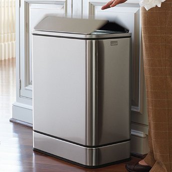 48 liter/12-1/2 gallon capacity. Charcoal filtration system to reduce odors. Fingerprint-proof brushed stainless steel. Odorsorb filter uses carbon to eliminate odors naturally and is built directly into the inner lid. Dent-proof polypropylene bucket. Our simplehuman Butterfly Sensor Trash Can upgrades your kitchen with high-tech convenience. Utilizing advanced Multi-sense technology, this touch-free trash bin engages an automatic lid when motion is detected, while also virtually eliminating unwanted openings. After three seconds of continued use, the lid automatically switches to stay-open mode, which lasts for 30 seconds—ideal for longer chores or changing garbage bags. . . . . . Multi-sense technology reacts to your behavior so it won't open unexpectedly or close before you've finished your task. Operates on 6 C batteries for up to a full year (not included) . 5-year warranty....see more| ♦ Good Product ♦ ♦ Good Price ♦ ♦ Don't Be Hesitate To Get It ! ♦ |
